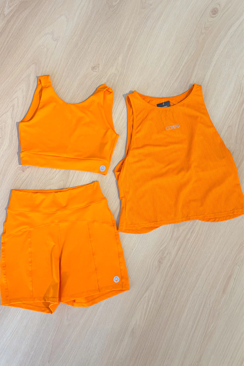 O Short July tem cós alto com compressão na medida certa, que modela a cintura com firmeza e segurança. A costura estratégica na parte frontal valoriza as curvas e oferece sustentação extra no abdômen — tudo isso com conforto e liberdade de movimento.